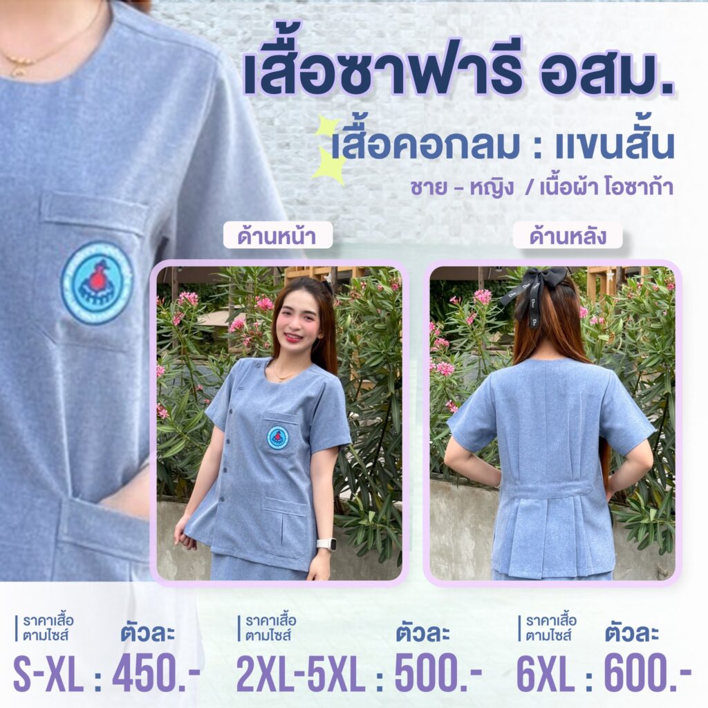 เสื้อซาฟารี อสม. คอกลม เเขนสั้น