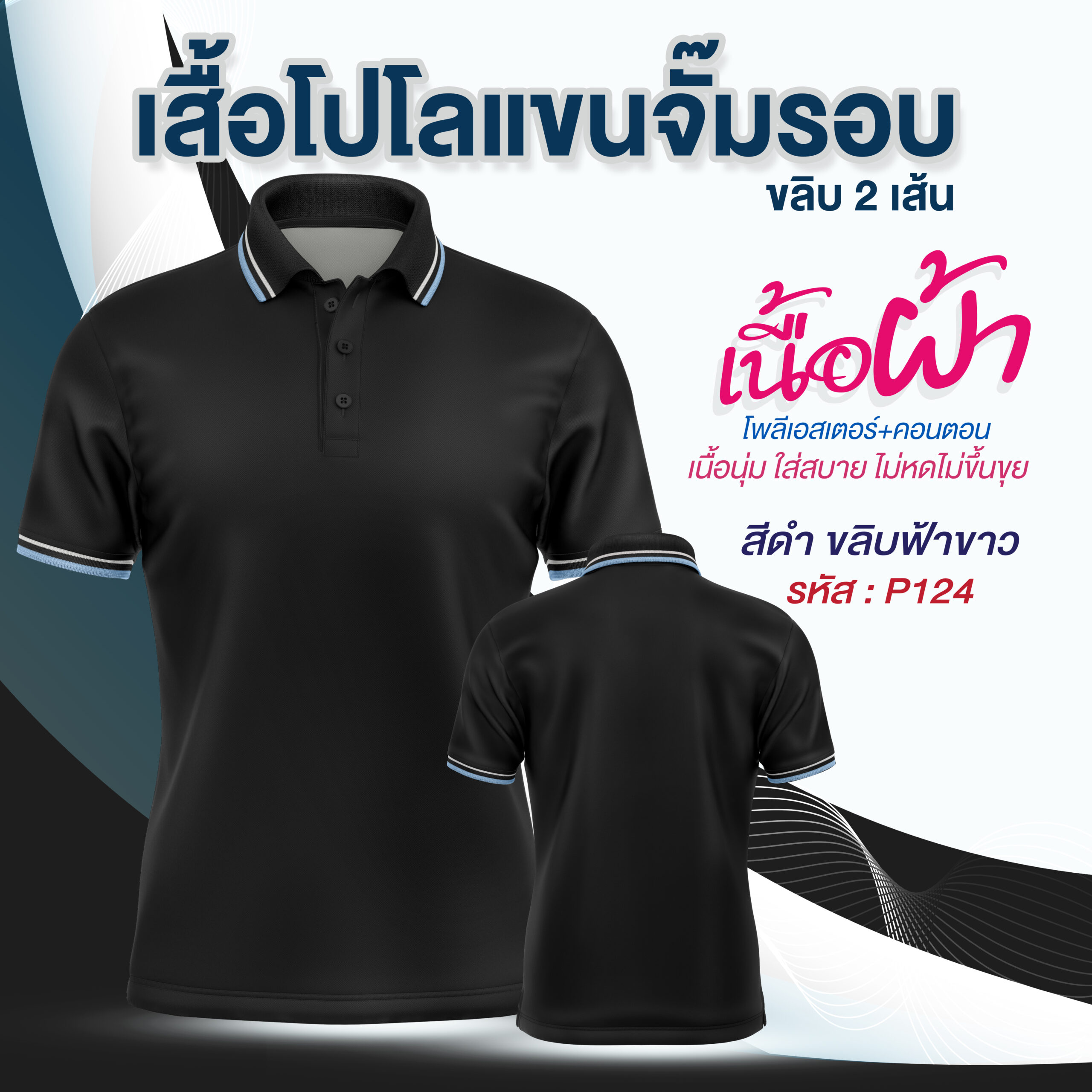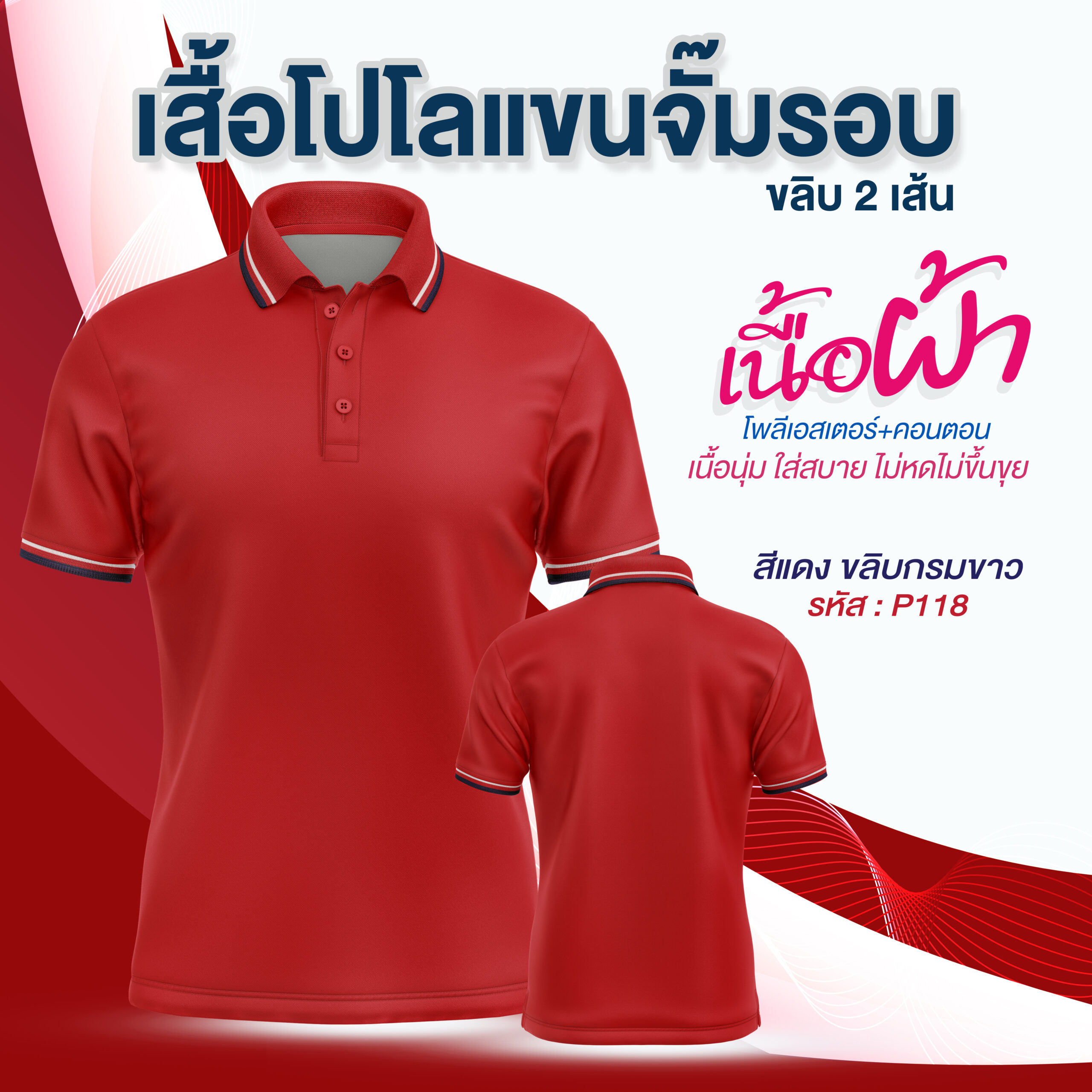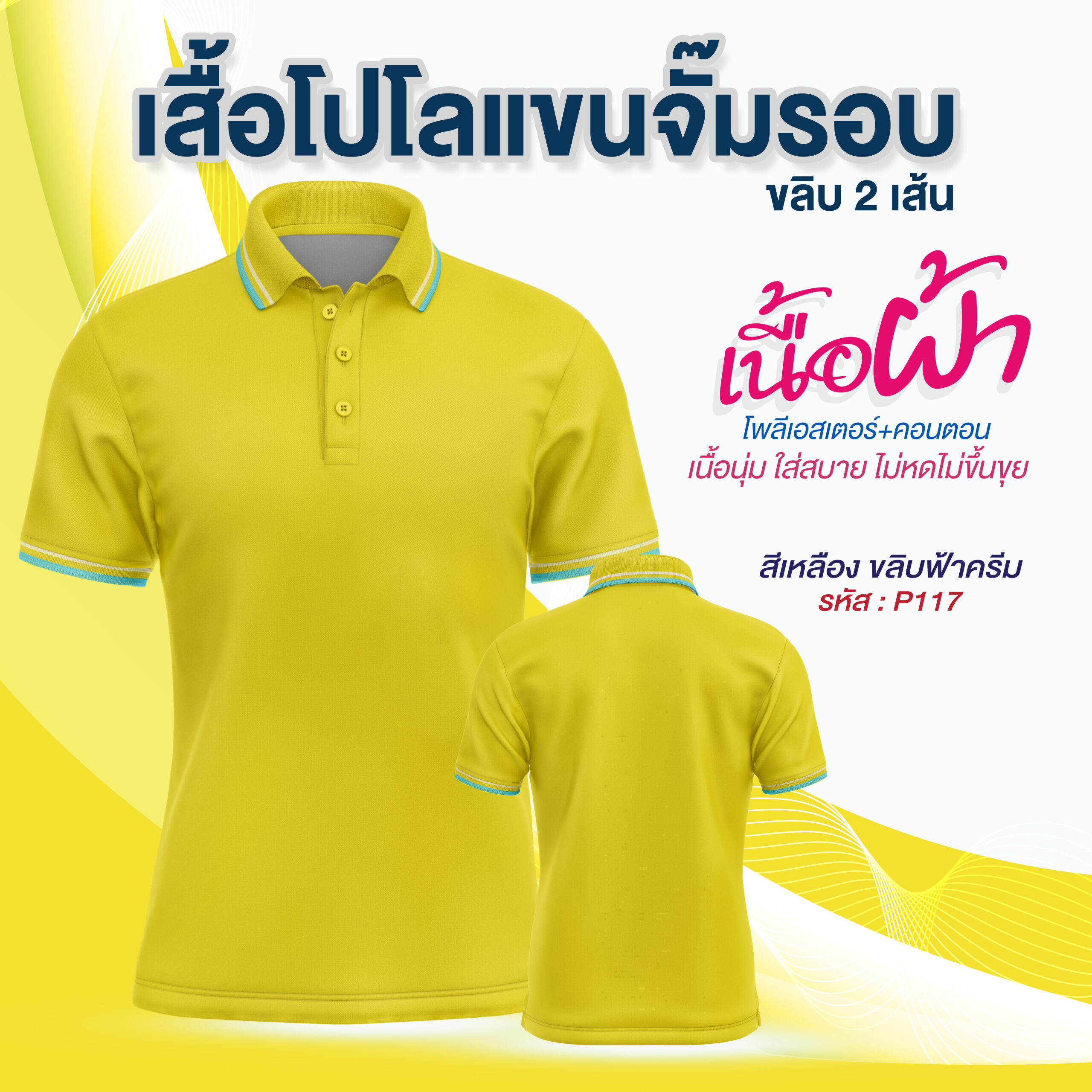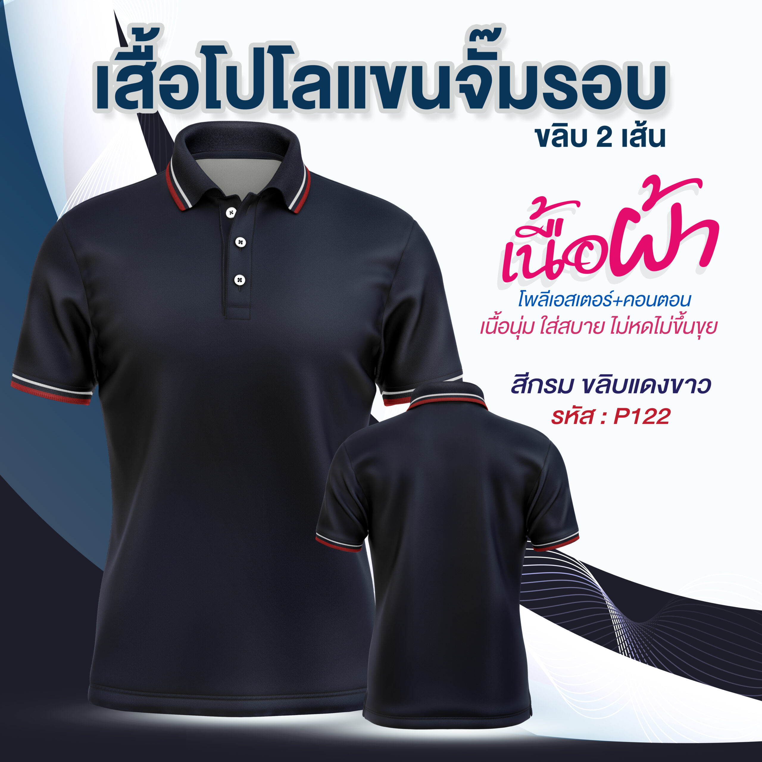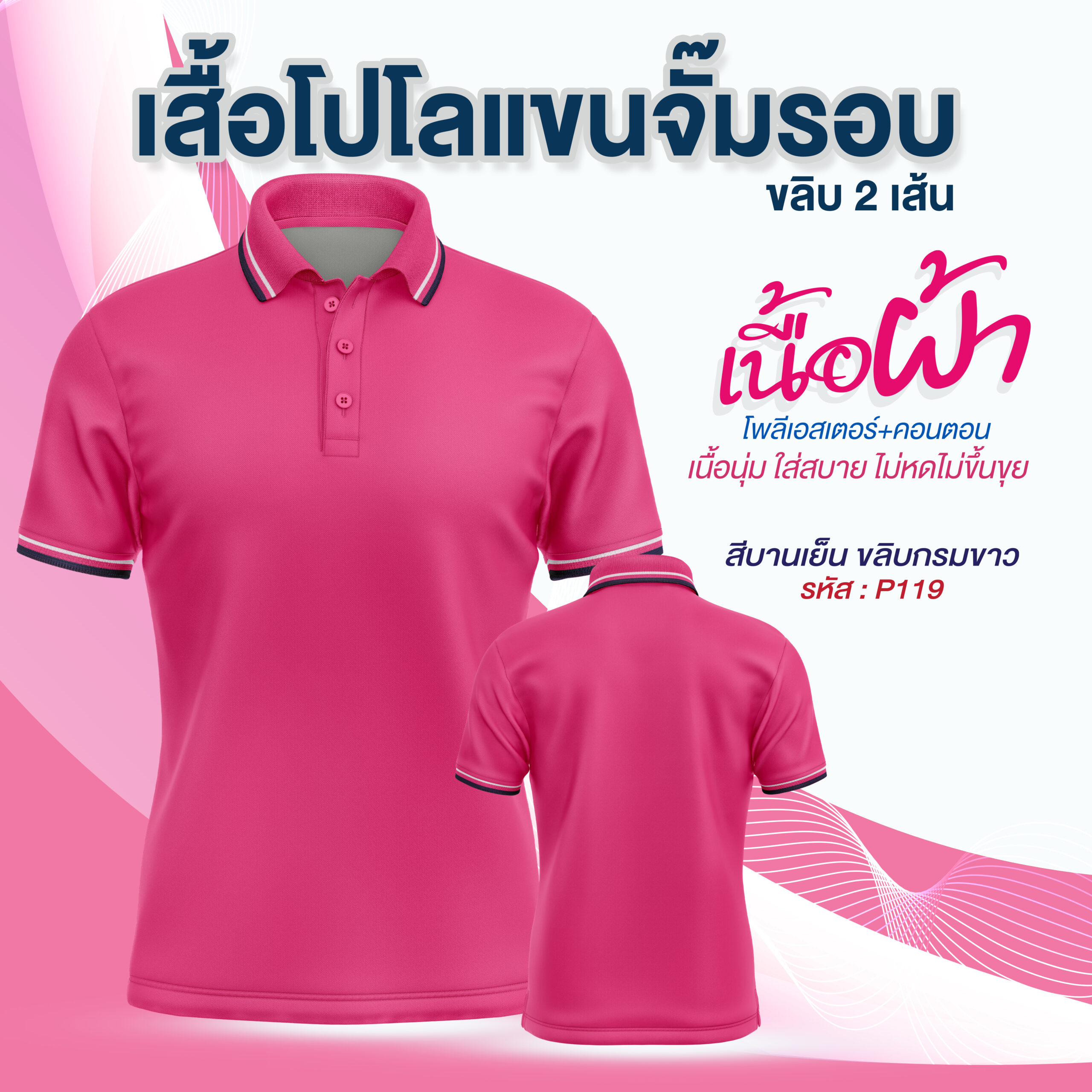 โปโลพรีเมี่ยม แขนจั๊มรอบ 2 ขลิบ มีสีทั้งหมด 10สี